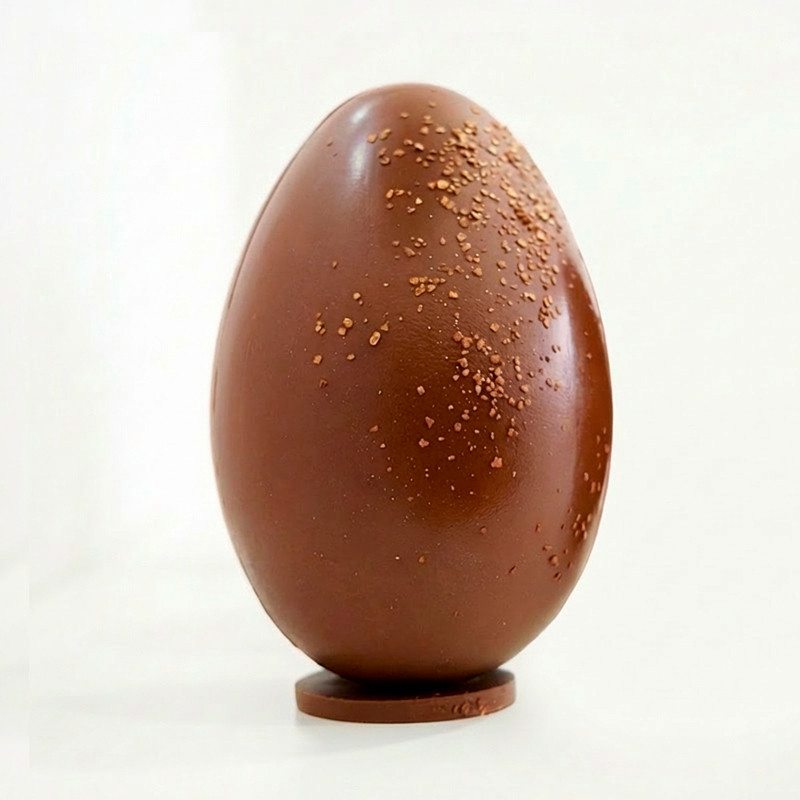 Moulage en chocolat au lait 35 % Equatoriale, fourré d'un caramel au beurre d'Isigny.