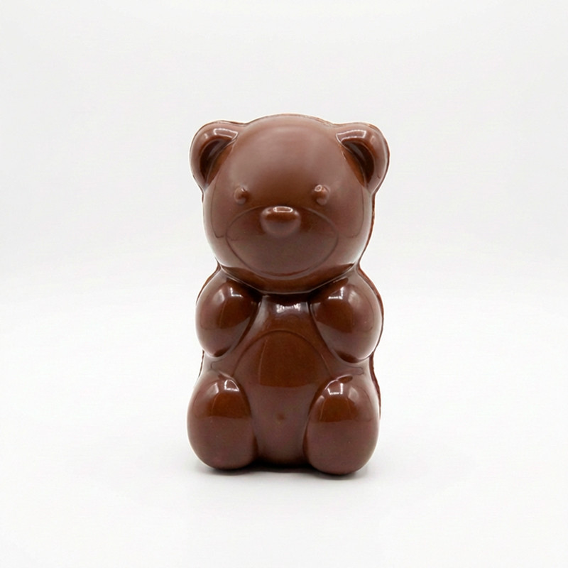 Moulage en chocolat noir 66 % Caraïbe, garni d'un assortiment de fritures et d'œufs pralinés réalisés dans le même chocolat.