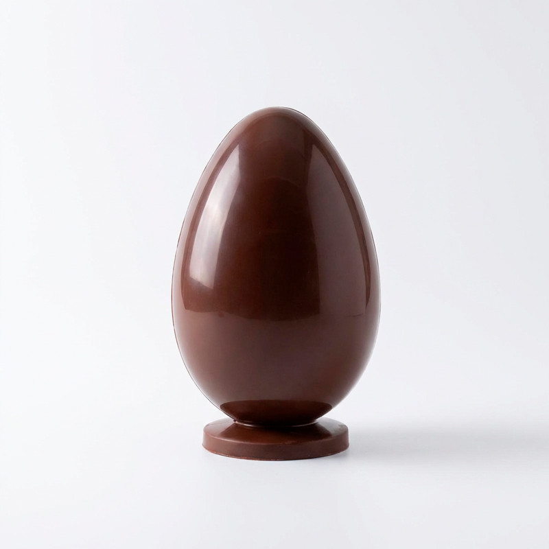 Moulage en chocolat noir 66 % Caraïbe, garni d'un assortiement de fritures et d'œufs pralinés réalisés dans le même chocolat.